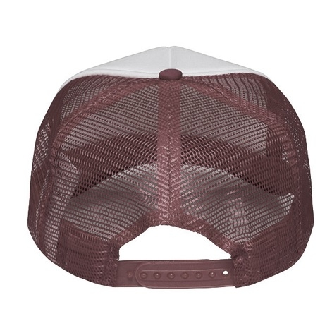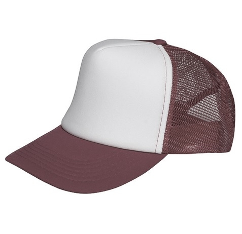 Czapka wykonana z pięciu paneli - panel przedni z białego poliestru do nadruku, pozostałe z siateczki.
