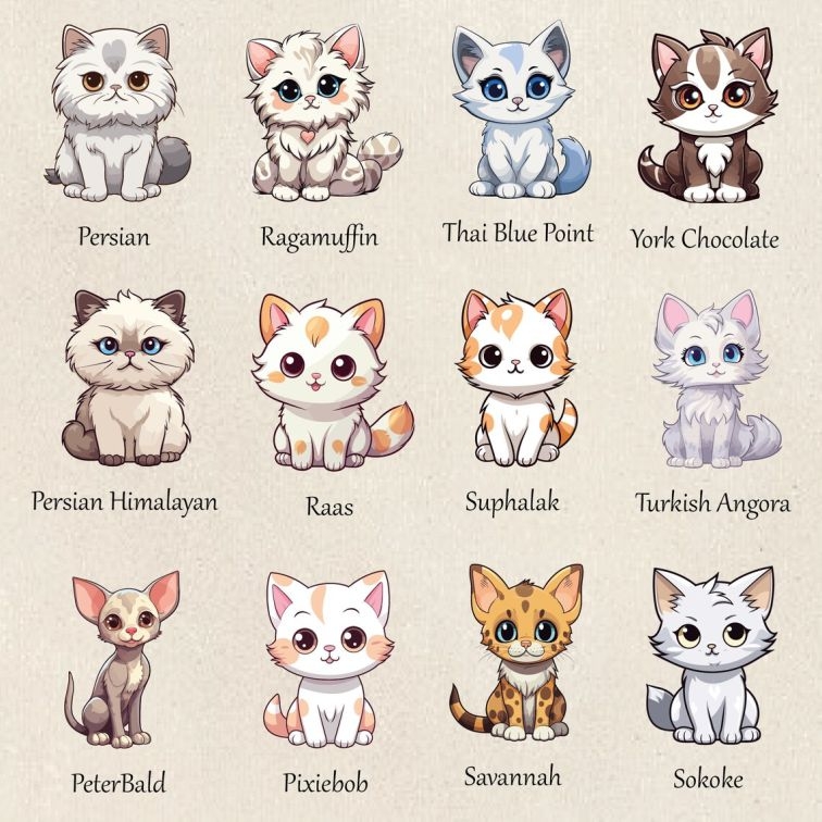 - rasy kotka, który mamy nadrukować (do wyboru ze zdjęć)