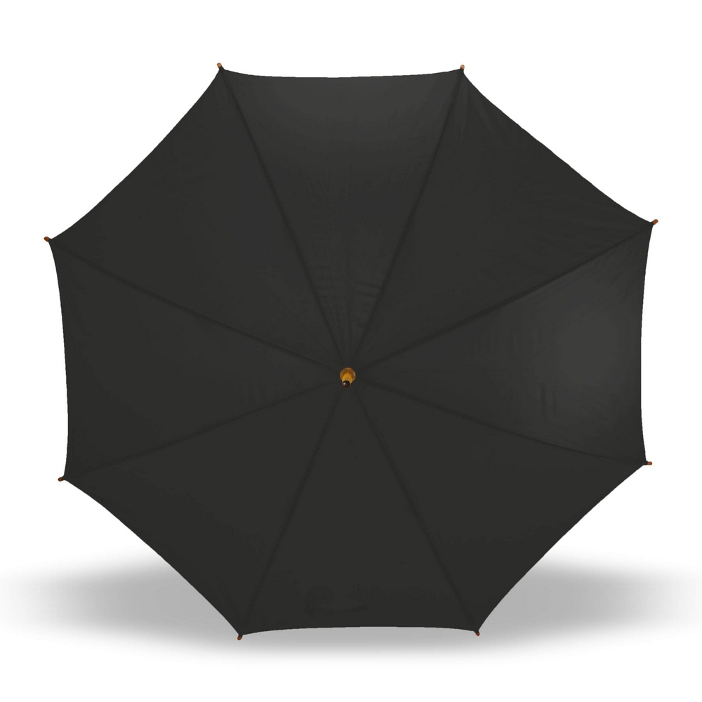 Czarny parasol wykonany z trwałego i dobrej jakości materiału.